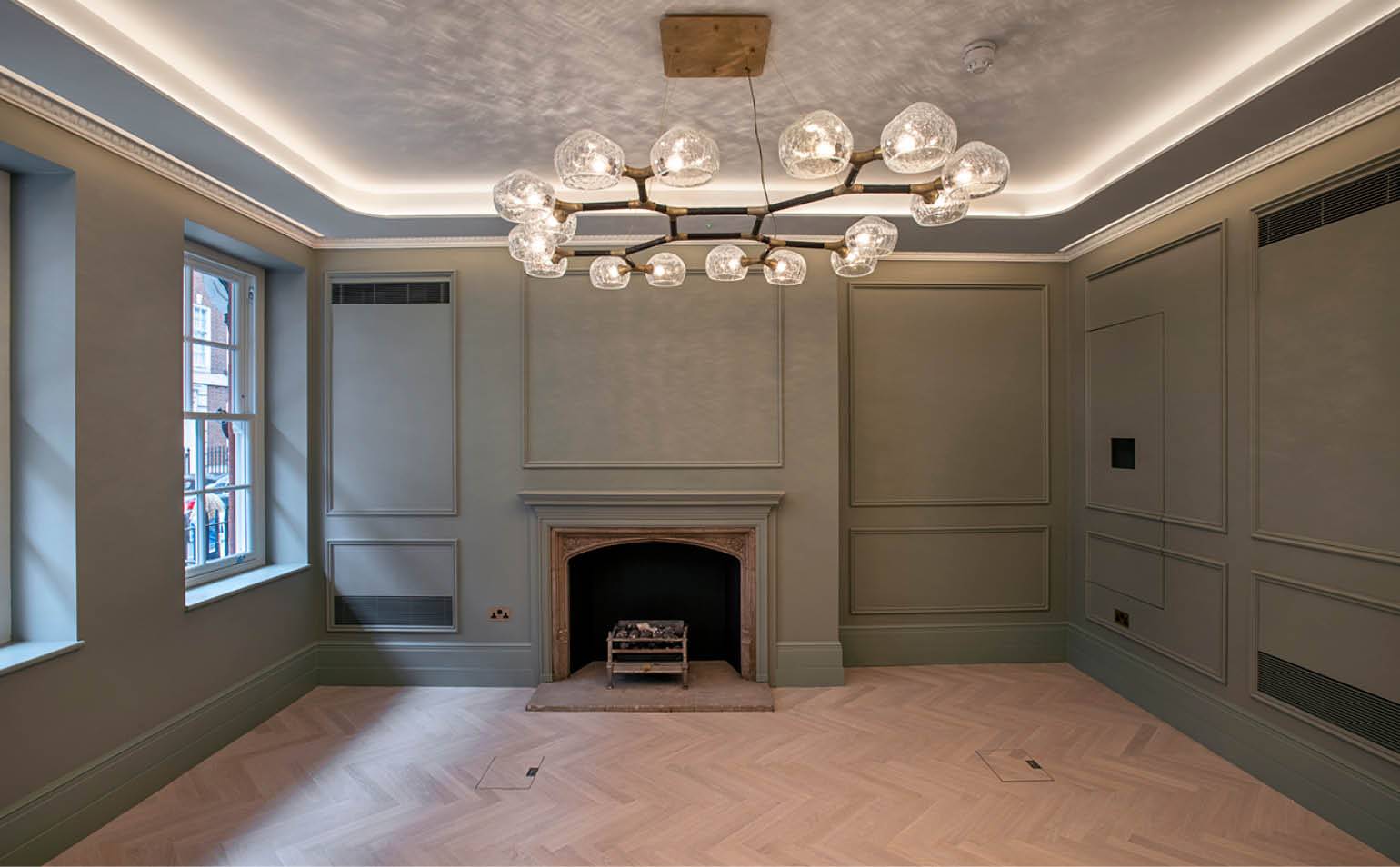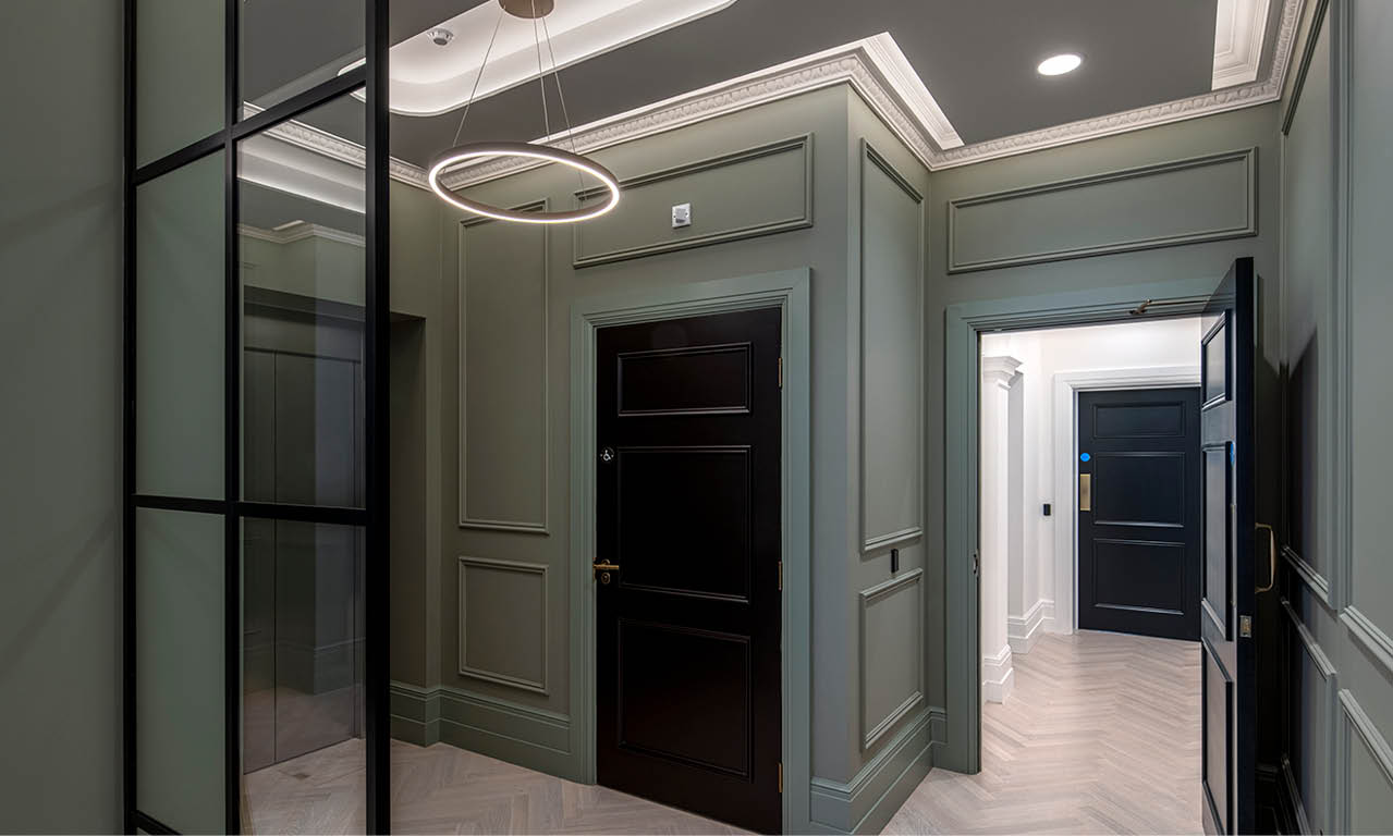 In addition to high specification ironmongery and contemporary furnishings, the building's ornate decoration is illuminated by modern lighting. The premium luxe specification throughout complements the building's baroque architecture and enhances its original decorative features.