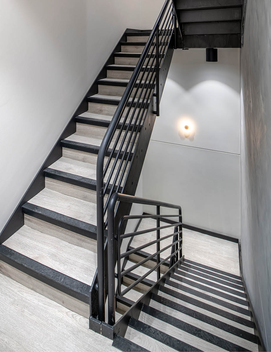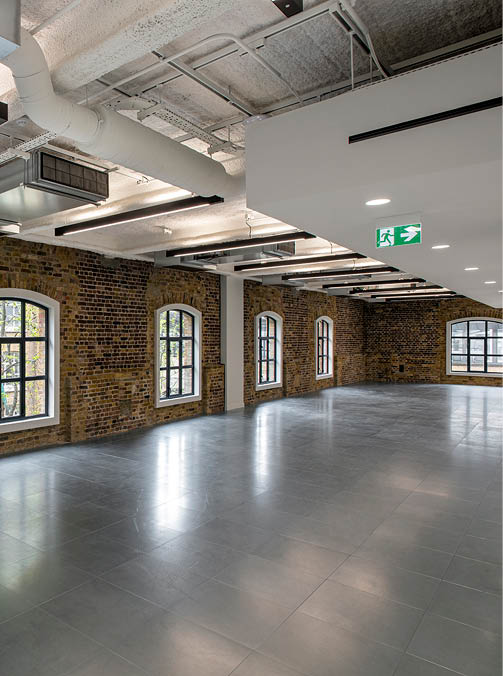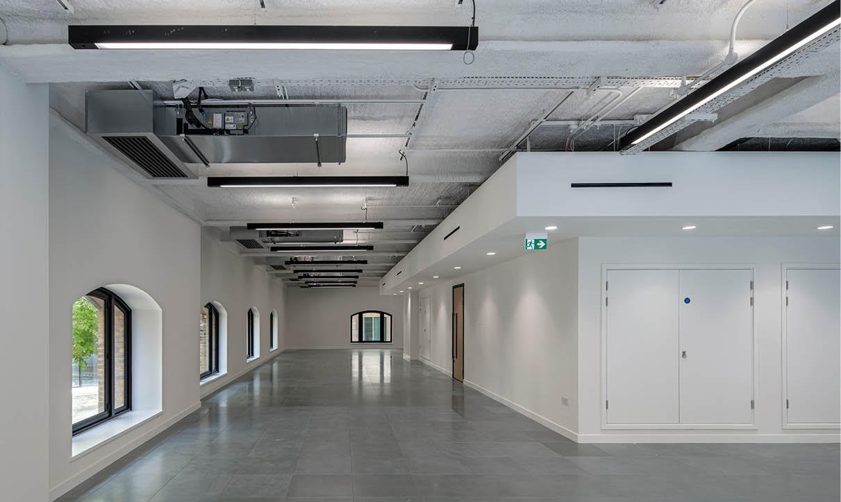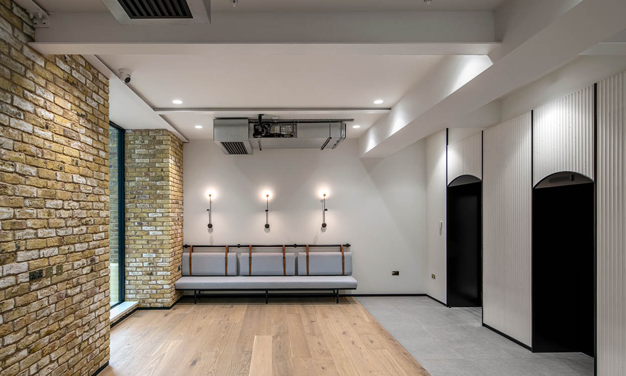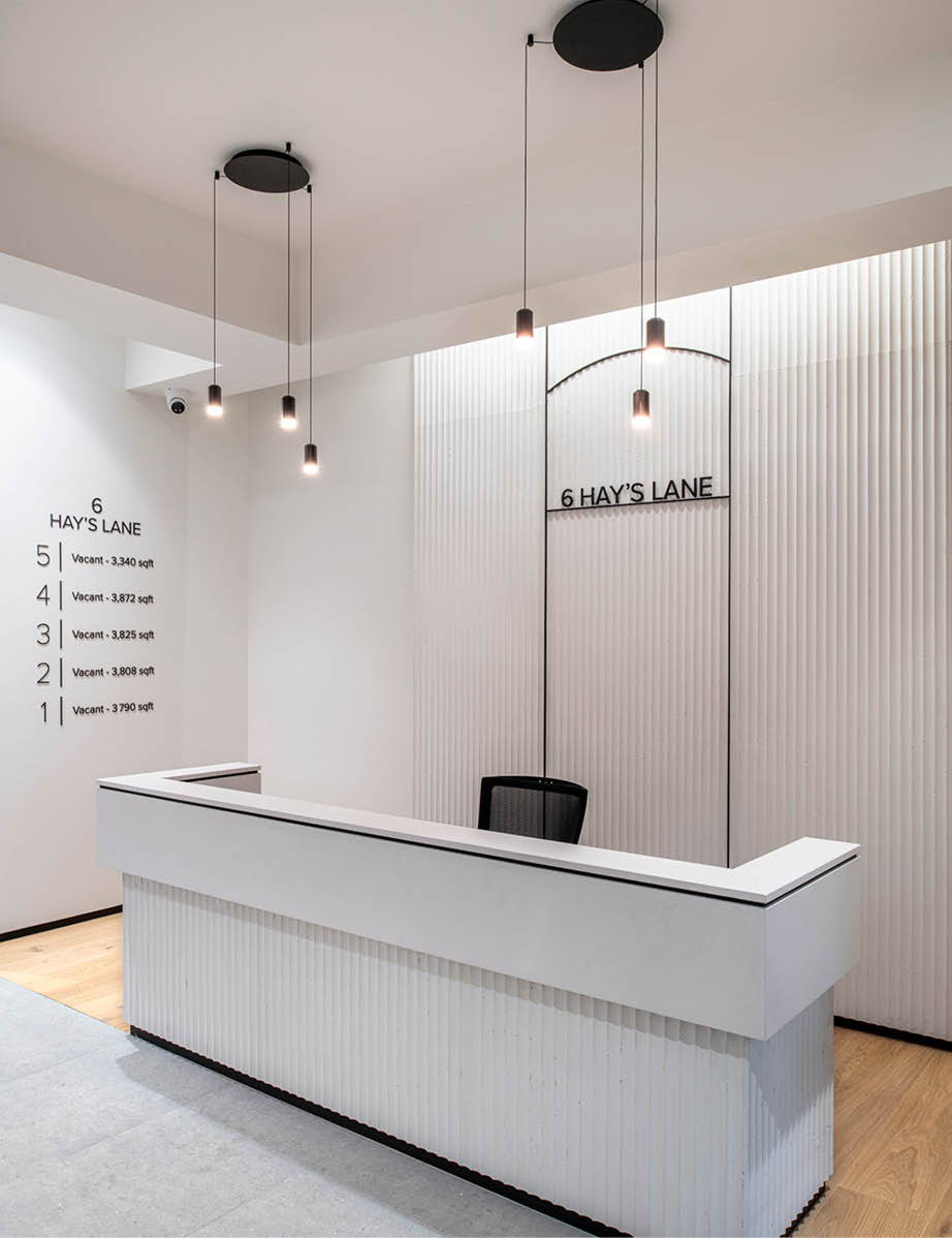 The design specification reflects the new London Bridge City look and feel with exposed services, matt black and concrete finishes that run throughout the scheme, including the kitchenettes, toilets and the new reception area that boasts fluted panelling and feature lighting.