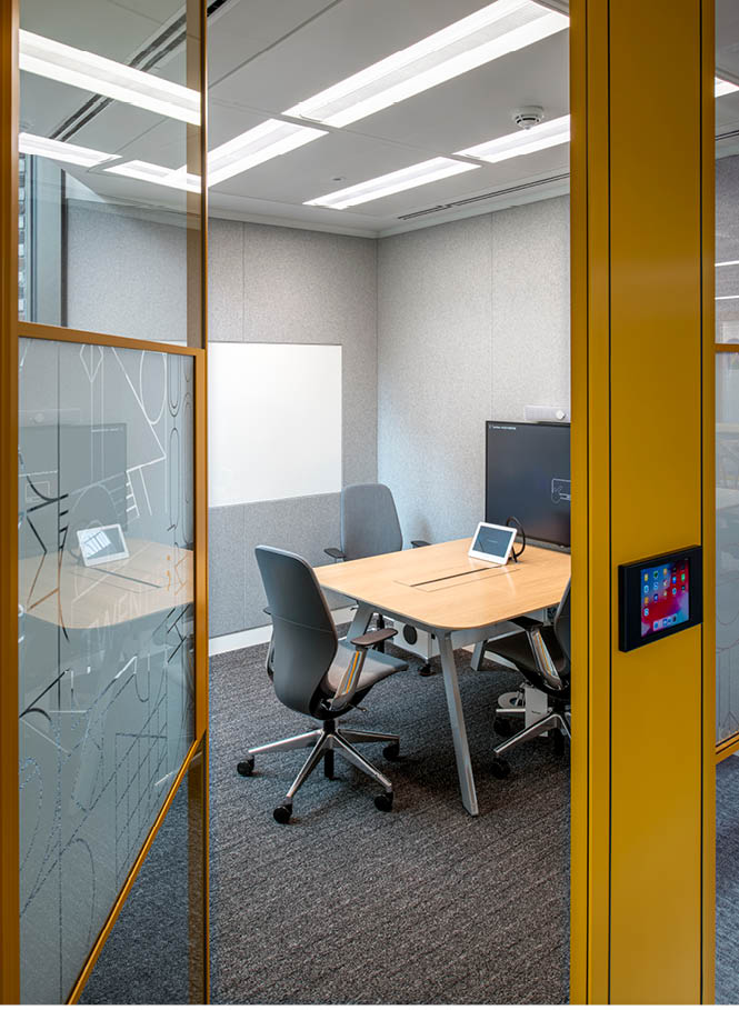 The design scheme by Gensler features high AV/IT-enabled meeting rooms and auditorium space, along with open plan desking, phone booths, and executive offices.