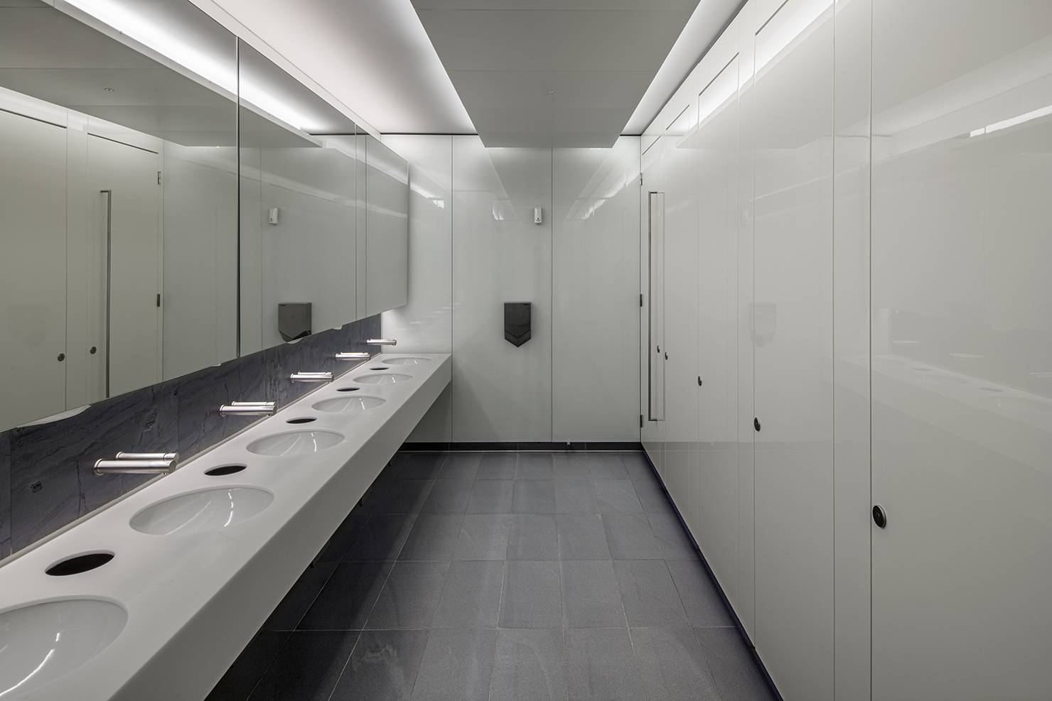 We worked closely with the professional teams on design development, including the services, acoustics, and lighting. We held regular project and architectural design reviews, and all design elements and finishes, including exposed soffits and MEP services, were benchmarked with samples or mock-ups to achieve the desired interior scheme.